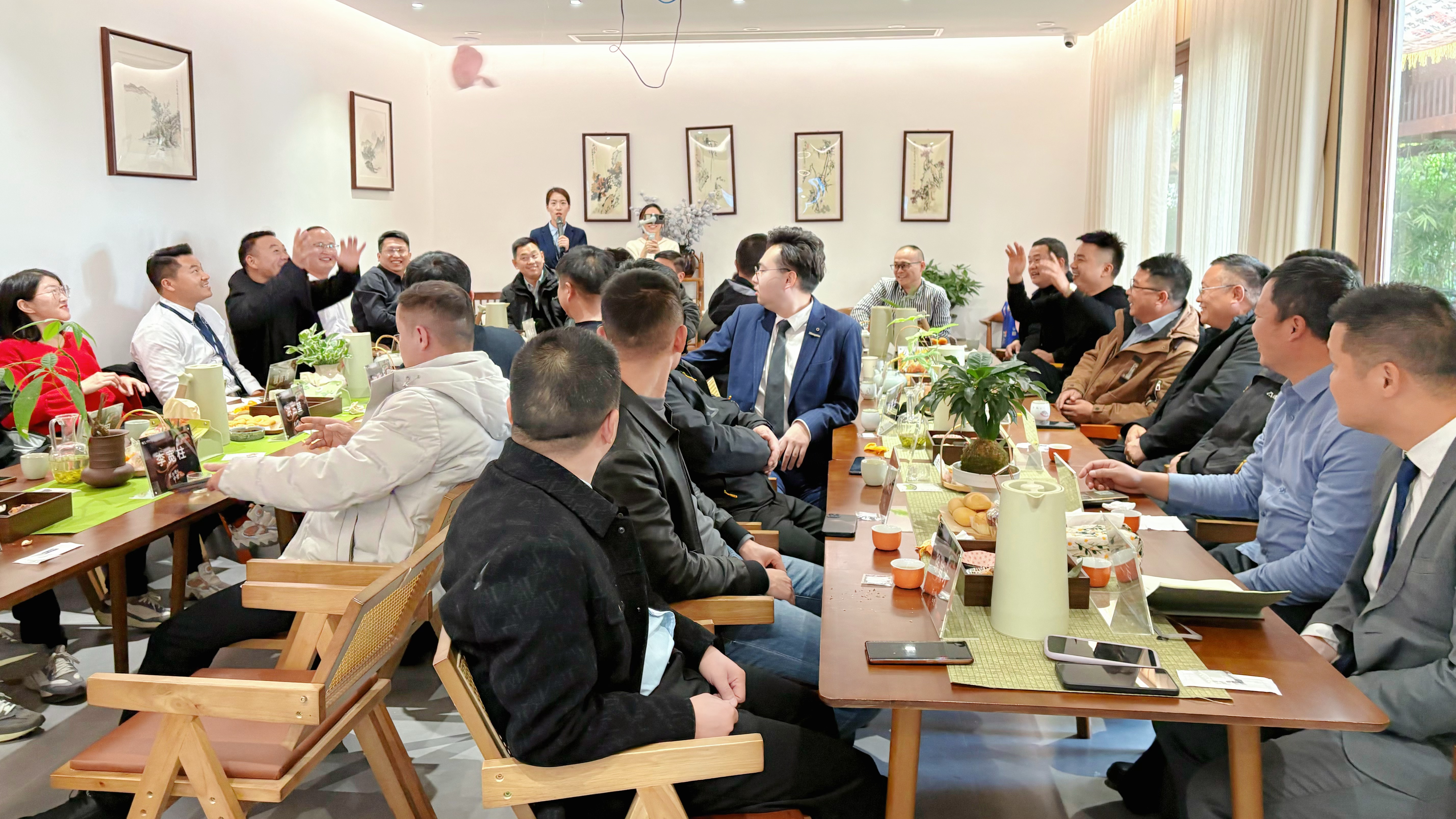 分享环节意犹未尽,随之而来的自由交流时间则让思想的交融更为深入。大家或三五成群,继续探讨刚才的话题;或围坐一桌,畅谈客户服务实例与未来的合作可能。茶香依旧,谈兴正浓,许多合作的契机就在这品茗漫谈的烟火气中悄然发生。
